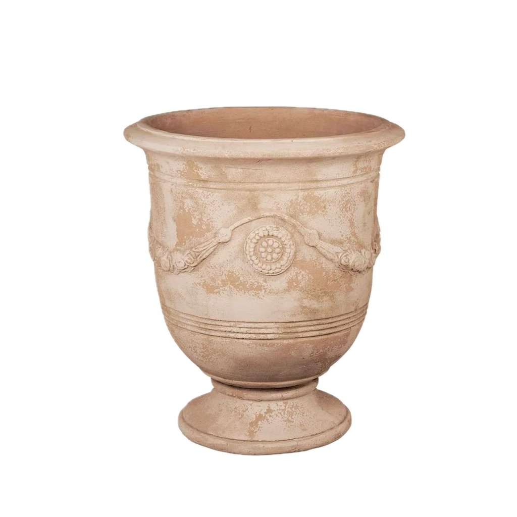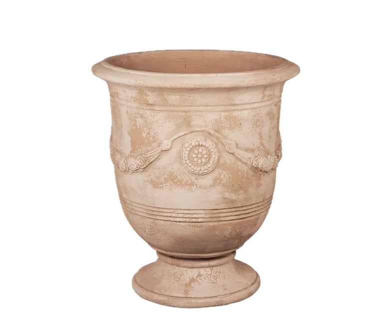 Un pot en terre cuite peut être décoré avec une variété de finitions, telles que des dessins en relief ou des peintures à la main, pour ajouter une touche décorative à votre jardin ou à votre maison. Les pots en terre cuite peuvent être utilisés à l'intérieur ou à l'extérieur, en fonction de leur taille et de leur poids, et ils peuvent être assortis à une variété de styles de décoration.